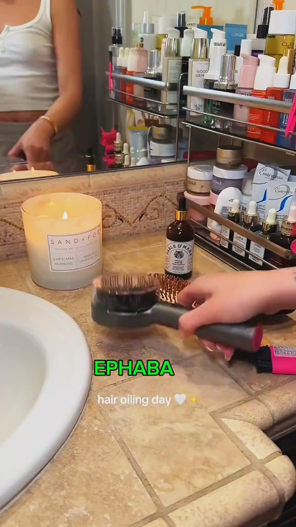 Use low- to medium-viscosity hair oils, serums, or scalp treatments. The ball‑press dispensing system meters small, even doses as you press; avoid very high-viscosity oils that may clog rollers. Rinse the tank after each use to prevent residue build-up.